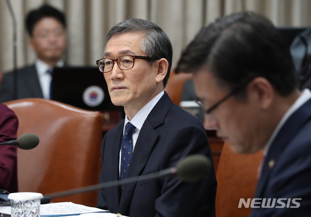 【서울=뉴시스】김진아 기자 = 정운현 국무총리 비서실장이 6일 서울 종로구 정부서울청사에서 열린 국무회의에서 첫 참석해 이낙연 국무총리의 모두발언을 경청하고 있다.