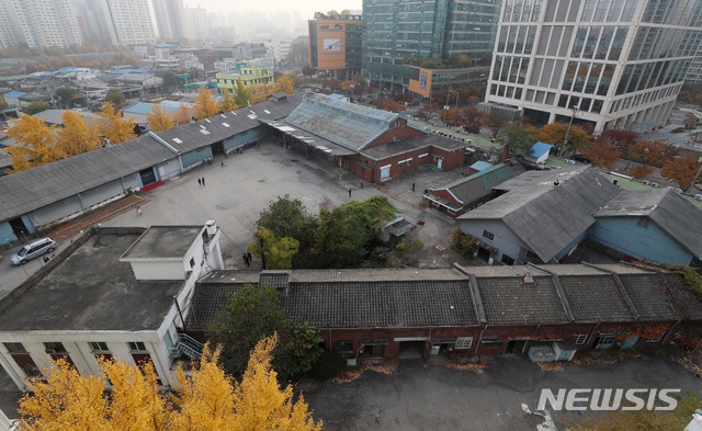 【서울=뉴시스】이영환 기자 = 대선제분 영등포 공장 재생사업 추진 선포식이 열린 6일 오후 서울 영등포구 대선제분 부지의 모습이 보이고 있다. 2018.11.06. [email protected]