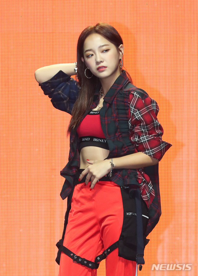 【서울=뉴시스】조수정 기자 = 그룹 구구단 세정이 6일 오후 서울 광장동 예스이십사라이브홀에서 개최한 세번째 미니앨범 '뉴 액션(New Action)' 발매 기념 쇼케이스에서 포즈를 취하고 있다. 2018.11.06. [email protected]
