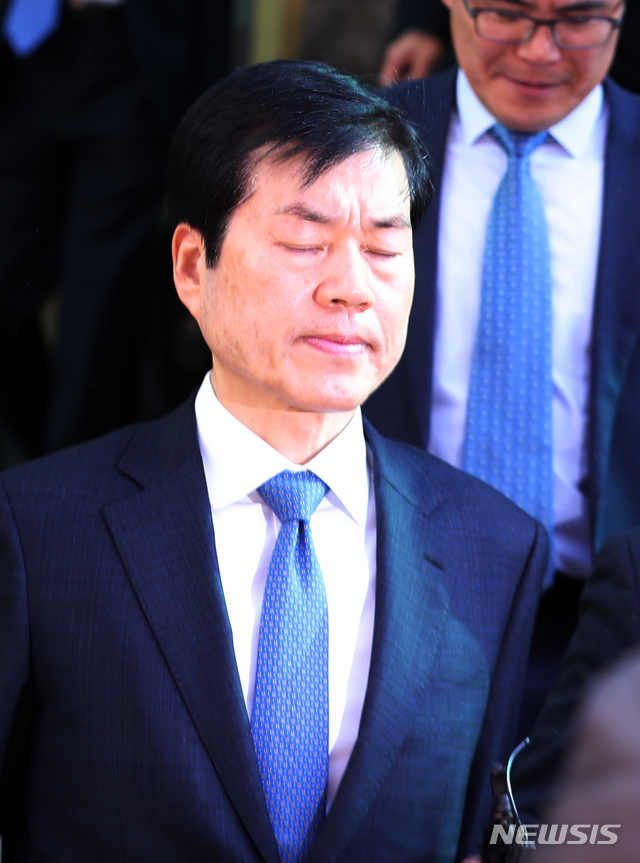 【서울=뉴시스】박주성 기자 = 김태한 삼성바이오로직스 대표이사가 14일 오전 서울 세종로 정부서울청사에서 열린 삼성바이오로직스 분식회계 혐의 재감리 안건 논의를 위한 증선위원회 회의 참석을 마친 후 정부서울청사를 나서고 있다. 2018.11.14.