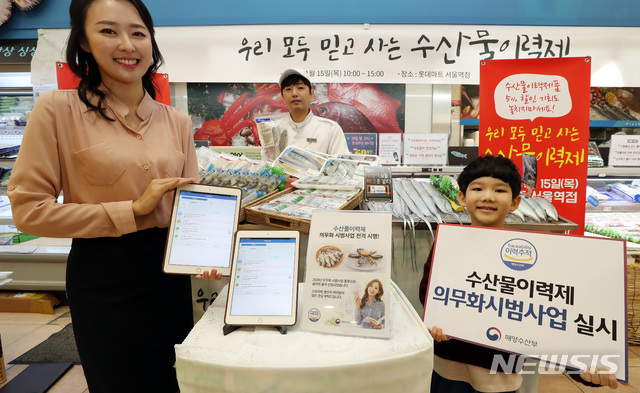 이날 수산물이력제 홍보 행사와 수산물이력제품을 할인된 가격으로 구입할 수 있는 타임세일 행사, 수산물이력제 로고를 확인하고 직접 이력정보를 조회 해볼 수 있는 체험행사가 동시 운영되었다. 2018.11.15.