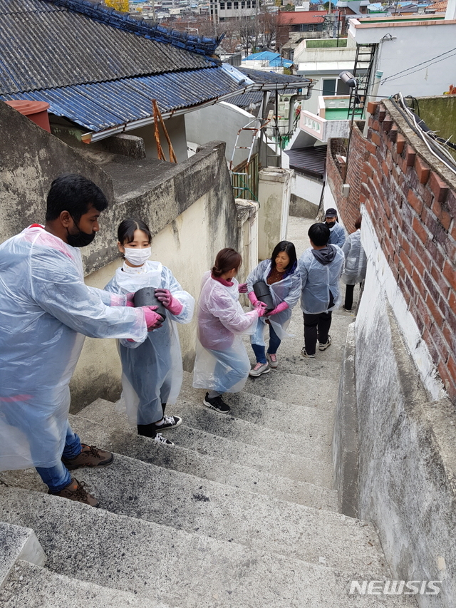 【순천=뉴시스】김석훈 기자 = 순천대학교(총장 직무대리 성치남)는 파루지역인재장학생 모임 '파루자치회' 40여명과 봉사단체 '좋은 친구들'회원과 청소년 등 100 여명이 순천시 행동과 옥천동에서 3500장의 연탄을 전달하는 '사랑의 연탄 나눔 봉사활동'을 펼쳤다고 19일 밝혔다. 2018.11.19. (사진=순천대 제공)