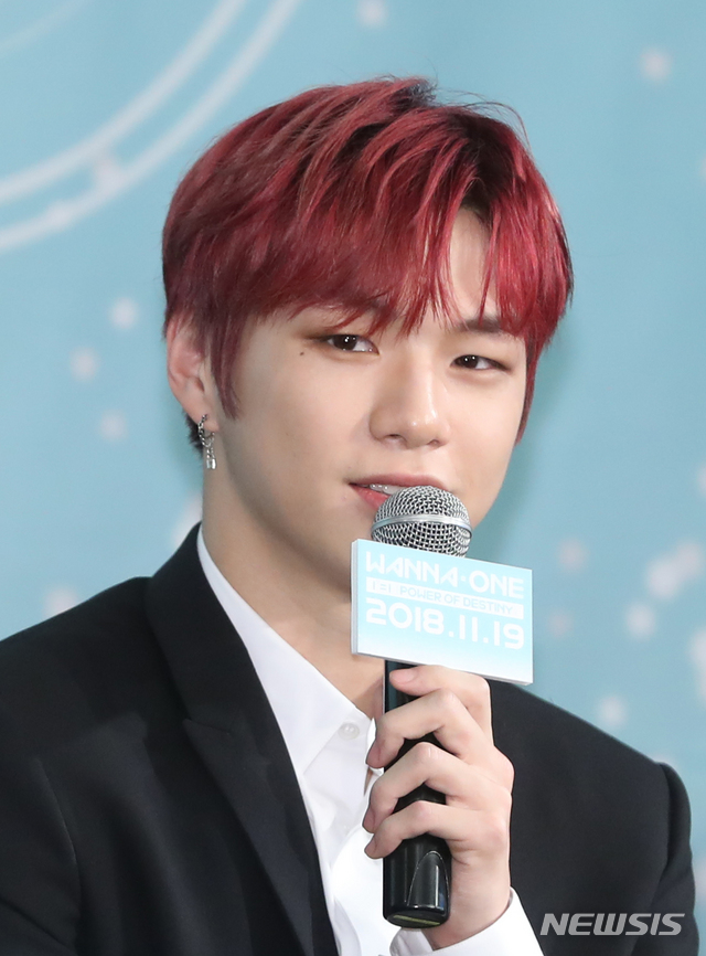 【서울=뉴시스】조수정 기자 = 그룹 워너원(WannaOne) 강다니엘이 19일 오후 서울 영등포구 여의도동 콘래드호텔에서 개최한 첫번째 정규앨범 '1¹¹=1(POWER OF DESTINY)' 발매 기념 기자간담회에서 질문에 답하고 있다. 2018.11.19. [email protected]