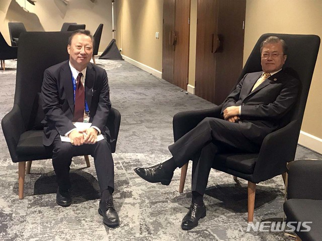 박용만 회장과 대화 나누는 문 대통령