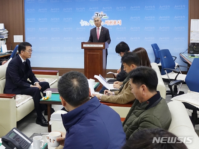 【서귀포=뉴시스】조수진 기자 = 28일 오전 양윤경 서귀포시장이 서귀포시청 기자실에서 취임 100일을 맞아 기자회견을 하고 있다. 2018.11.28.
