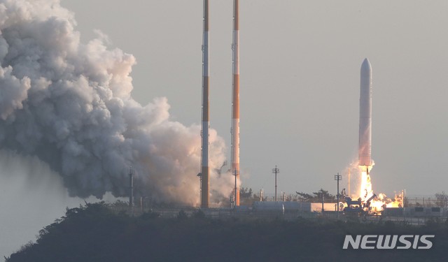 이번 엔진 시험발사체는 한국형 발사체인 ‘누리호’에 쓰이는 75t 액체엔진의 성능을 검증하기 위한 것으로, 총 3단으로 구성된 누리호의 2단부에 해당한다. 시험발사체의 길이는 25.8m, 최대지름은 2.6m, 무게는 52.1t이다. 2018.11.28.