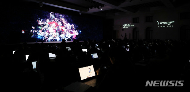 【서울=뉴시스】박주성 기자 = 이성구 엔씨(NC)소프트 리니지 유닛(UNIT)장이 29일 오전 서울 강남구 라움아트센터에서 열린 리니지 서비스 20주년 미디어 간담회 'ONLY ONE'에서 '리니지 리마스터(Lineage Remastered)'를 소개하고 있다. 2018.11.29.
