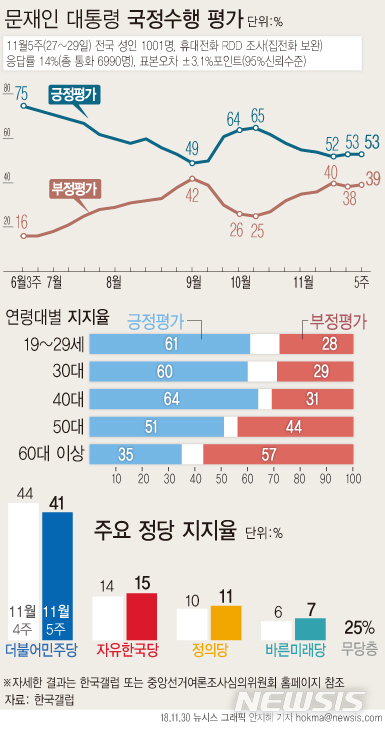 [그래픽]文대통령 11월5주 지지율 53%(갤럽)