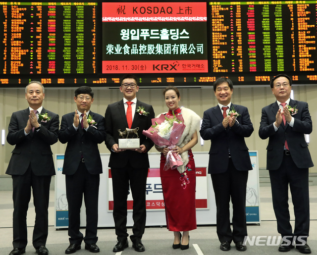 【서울=뉴시스】 한국거래소 코스닥시장본부는 30일 오전 서울 여의도 한국거래소 서울사옥 홍보관에서 육가공식품 제조업체(중국 광동성, 사업자회사)인 윙입푸드홀딩스의 코스닥시장 신규상장기념식을 개최했다.