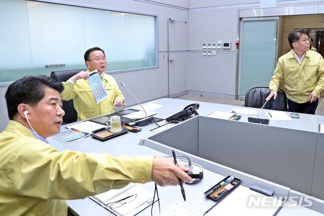 【서울=뉴시스】 김부겸 행정안전부 장관이 30일 오후 서울 종로구 세종대로 정부서울청사 1층 중앙재난상황실 서울상황센터에서 수원역 인근 골든프라자에서 발생한 화재와 관련하여 긴급회의를 주재하고 있다. 2018.11.30. (사진=행정안전부 제공)