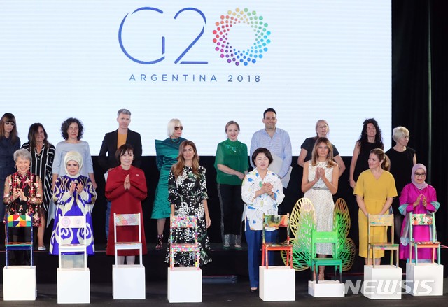 김정숙 여사, '각국 정상 배우자들과 함께'