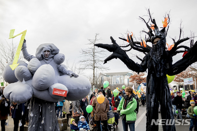 【베를린=AP/뉴시스】지난 1일(현지시간) 독일 수도 베를린에서 기후변화를 막기 위한 정부의 과감한 조치를 촉구하는 시위가 열리고 있다. 현지 언론은 베를린과 서부도시 쾰른에서 열린 시위에 3만6000명이 참여했다고 전했다. 2018.12.03