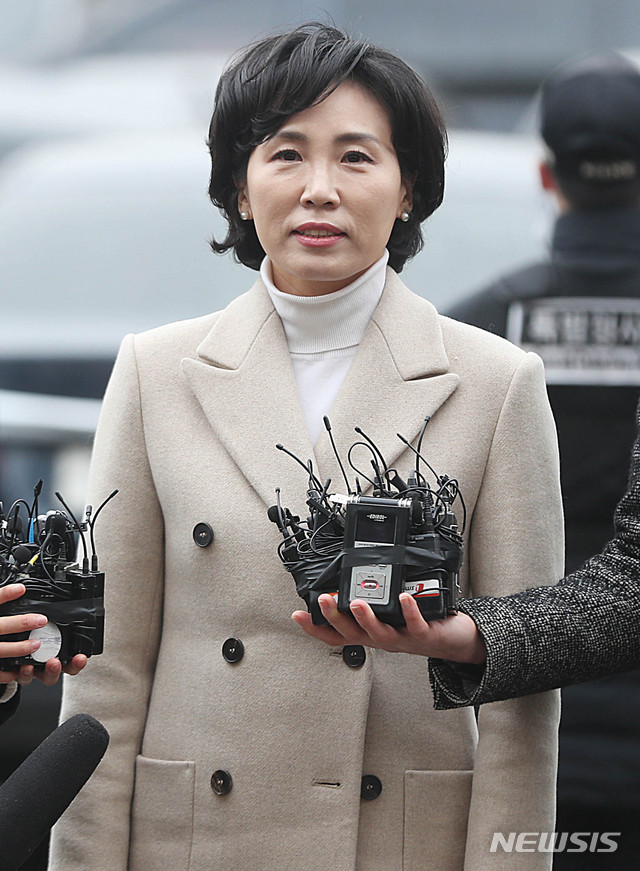 【수원=뉴시스】추상철 기자 = 이재명 경기도지사의 부인 김혜경씨가 4일 오전 경기 수원시 영통구 수원지방검찰청에서 이른바 '혜경궁 김씨' 사건과 관련 피고발인 신분으로 조사를 받기 위해 검찰로 들어서며 취재진의 질문에 답변하고 있다. 2018.12.04.