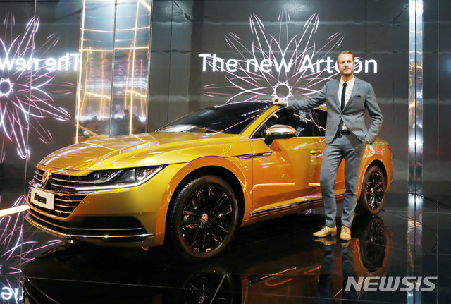 【서울=뉴시스】최동준 기자 = 슈테판 크랍 폭스바겐코리아 사장이 5일 서울 강남구 아트 앤 라이프 스타일 하우스 디 아테온에서 열린 프리미엄 세단 '아테온' 출시 기념행사에서 포즈를 취하고 있다.