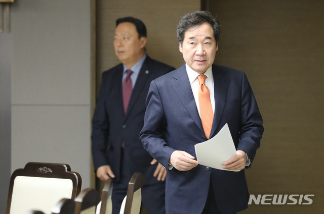 【세종=뉴시스】강종민 기자 = 이낙연 국무총리가 6일 오전 정부세종청사에서 굳은 표정으로 국정현안점검조정회의장에 입장하고 있다. 2018.12.06.