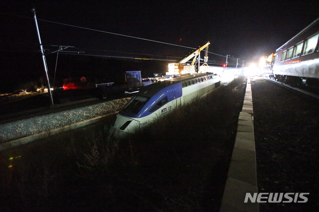KTX 탈선 기관차 바퀴쪽 파손 매우 심각해 수송 난항