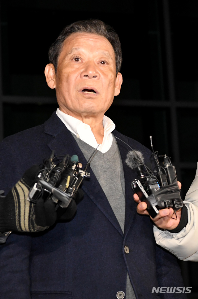 【광주=뉴시스】신대희 기자 = 공직선거법 위반·직권남용·업무방해 혐의를 받는 윤장현 전 광주시장이 10일 오후 광주지법에서 검찰 조사를 받은 뒤 취재진 질문에 답하고 있다. 2018.12.10.