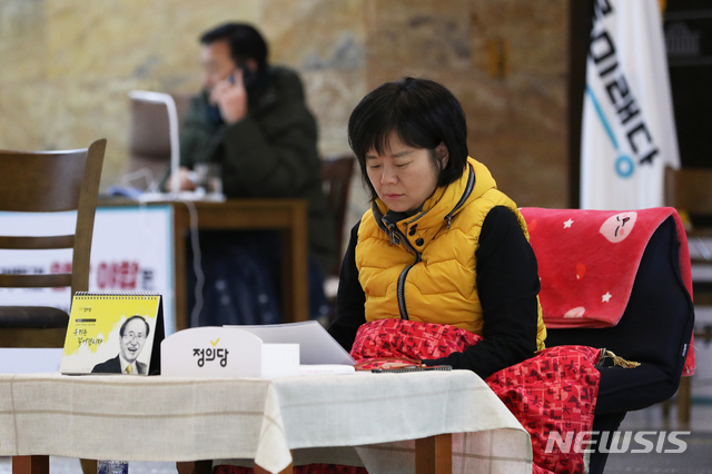 【서울=뉴시스】김병문 수습기자 = 바른미래당 손학규 대표와 정의당 이정미 대표가 11일 오전 서울 여의도 국회 본청 로텐더홀에서 더불어민주당과 자유한국당이 선거제 개편 수용 없이 2019년 예산안을 합의한 것에 반발해 6일째 단식을 이어가고 있다. 2018.12.11.