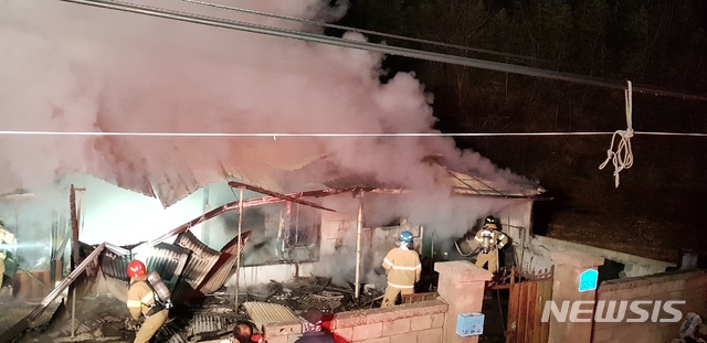 【홍성=뉴시스】이종익 기자 = 16일 오후 6시23분께 충남 홍성군 결성면 단독주택에 불이 나 집안 내부 99㎡와 가재도구 등이 소실되고, 주택안에서 A(84)씨가 숨진 채 발견됐다.  경찰과 소방당국은 목격자 진술 등을 토대로 정확한 화재 원인을 조사 중이다.  2018.12.17. (사진=홍성소방서 제공)