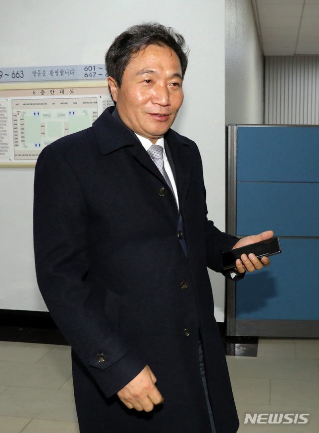【서울=뉴시스】박영태 기자 = 바른미래당을 탈당해 자유한국당으로 입당 예정인 이학재 정보위원장이 17일 오후 서울 영등포구 여의도 국회 정보위원장실을 나와 어디론가 이동하고 있다. 2018.12.17.