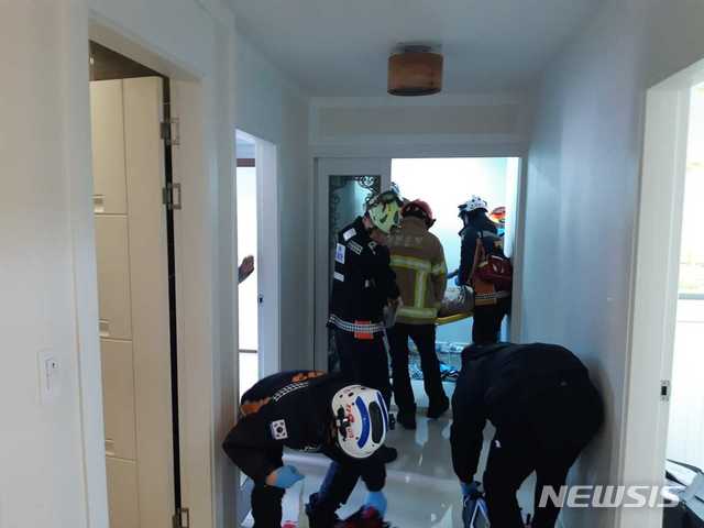 【강릉=뉴시스】박종우 기자 = 18일 오후 강원 강릉시의 한 펜션에서 고교생 10명이 단체 숙박 중 4명이 사망하고 6명이 의식불명되는 사고가 발생해 소방대원들이 구조활동을 펼치고 있다. 2018.12.18. (사진=강원도소방본부 제공)