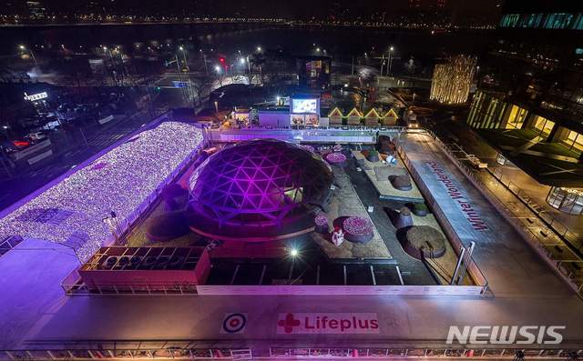 서울의 랜드마크 63빌딩, 1층 옥외주차장이 핑크빛 아이스링크로 탈바꿈