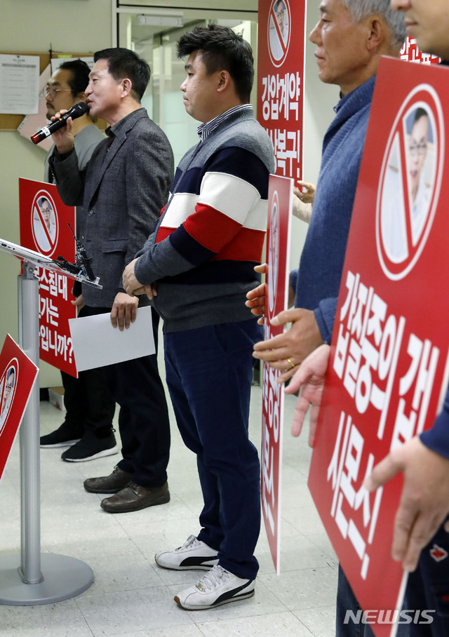 비대위는 대리점주들에게 계약조건을 불리한 내용으로 변경하여 일방적으로 구두 통보, 변경된 내용으로 계약을 체결하지 않으면 계약관계를 종료하겠다고 대리점주들을 강압했다고 주장했다. 2018.12.19.