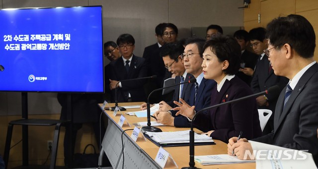 【서울=뉴시스】박주성 기자 = 김현미 국토교통부 장관이 19일 오전 정부서울청사에서 수도권 3기 신도시 입지와 2기 신도시 광역교통개선 대책을 발표하고 있다.