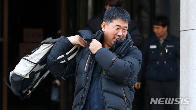 【서울=뉴시스】추상철 기자 = 대법원이 자동차 부품업체 보쉬전장, 다스 근로자가 각각 회사를 상대로 낸 통상임금 소송 판결을 내린 27일 오전 서울 서초구 대법원에서 금속노조 노조원들이 재판을 마친후 법정을 나서고 있다. 2018.12.27.