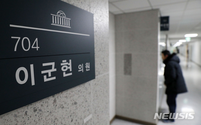 【서울=뉴시스】홍효식 기자 = 정치자금법 위반 혐의로 기소된 이군현 자유한국당 의원의 집행유예 형이 확정돼 의원직을 상실한 27일 오후 서울 여의도 국회 의원회관 이 의원의 사무실 앞에 명패가 붙어있다. 2018.12.27.