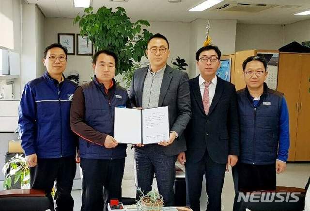 【서울=뉴시스】타이어뱅크 세종청사점이 기업 복리후생사업을 지원한다. 27일(목) 세종특별자치시 가람동 한국중부발전세종발전본부에서 문덕주(왼쪽 두번째) 세종천연가스발전본부 지부위원장, 한병재(왼쪽 세번째) 타이어뱅크 사업주조합연합회 조합장, 김재현(왼쪽 네번째) 타이어뱅크 홍보마케팅본부 이사와 관계자들이 한국중부발전 직원 및 직원가족 제휴 MOU를 진행하고 기념 촬영을 하고 있다. 2018.12.28. (사진=타이어뱅크 제공)
