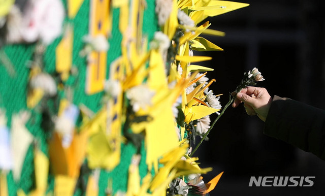 【서울=뉴시스】추상철 기자 = 30일 오전 서울 강동구 천호동 성매매집결지 화재 현장에 마련된 희생자를 위한 분향 공간에서 수녀가 얼어있는 국화꽃을 교체하고 있다.