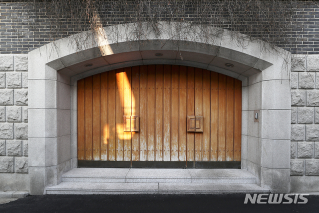 【서울=뉴시스】김병문 수습기자 = 7일 오전 서울 서대문구 전두환 전 대통령 자택의 대문이 굳게 닫혀 있다.