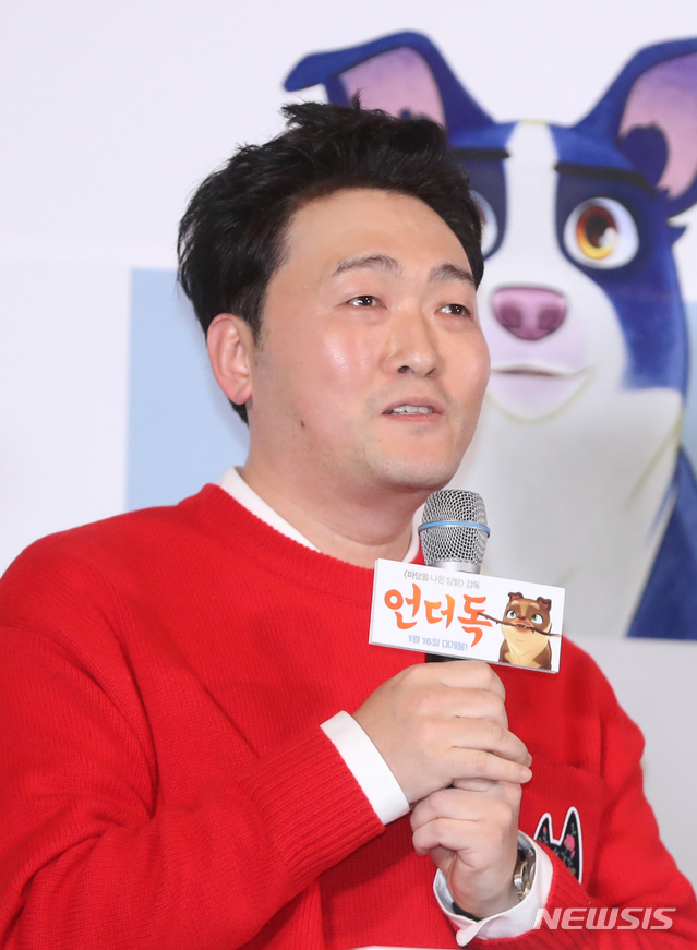 【서울=뉴시스】조수정 기자 = 애니메이션 영화 '언더독' 언론시사회가 열린 7일 오후 서울 이촌동 CGV용산아이파크몰에서 목소리 출연자인 배우 이준혁이 인사말 하고 있다. 영화 '언더독'은 오는 16일 개봉한다. 2018.01.07. [email protected]