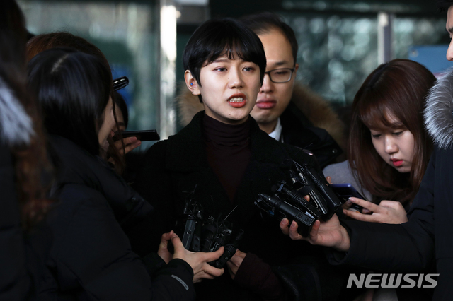【서울=뉴시스】김병문 수습기자 = 유튜버 양예원 씨가 9일 오전 서울 마포구 서부지법에서 열린 '비공개 촬영회' 모집책 최모(45·구속)씨의 강제추행 및 성폭력 범죄 등에 관한 특례법상 동의촬영물 유포 혐의에 대한 선고공판이 끝난 뒤 심경을 밝히고 있다. 2019.01.09.