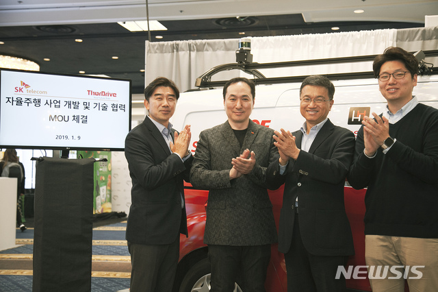 【서울=뉴시스】박주성 기자 = SK텔레콤은 9일 오후(현지시각) 세계 최대 IT·가전 전시회 ’CES 2019’가 열린 미국 라스베이거스에서 토르드라이브와 ‘자율주행 사업 개발 및 기술 협력을 위한 양해각서(MOU)’를 체결했다고 밝혔다.