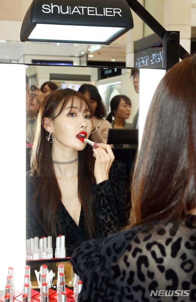 【서울=뉴시스】최진석 기자 = 13일 오후 서울 중구 신세계백화점 본점에서 진행된 메이크업 아티스트 브랜드 슈에무라(shu uemura)의 NEW 레드립(데일리 레드 RD163) 행사에 참석한 뷰티 크리에이터 이사배가 슈에무라 매장을 방문해 레드립 제품을 바르고 있다. 2019.01.13.(사진제공=슈에무라)