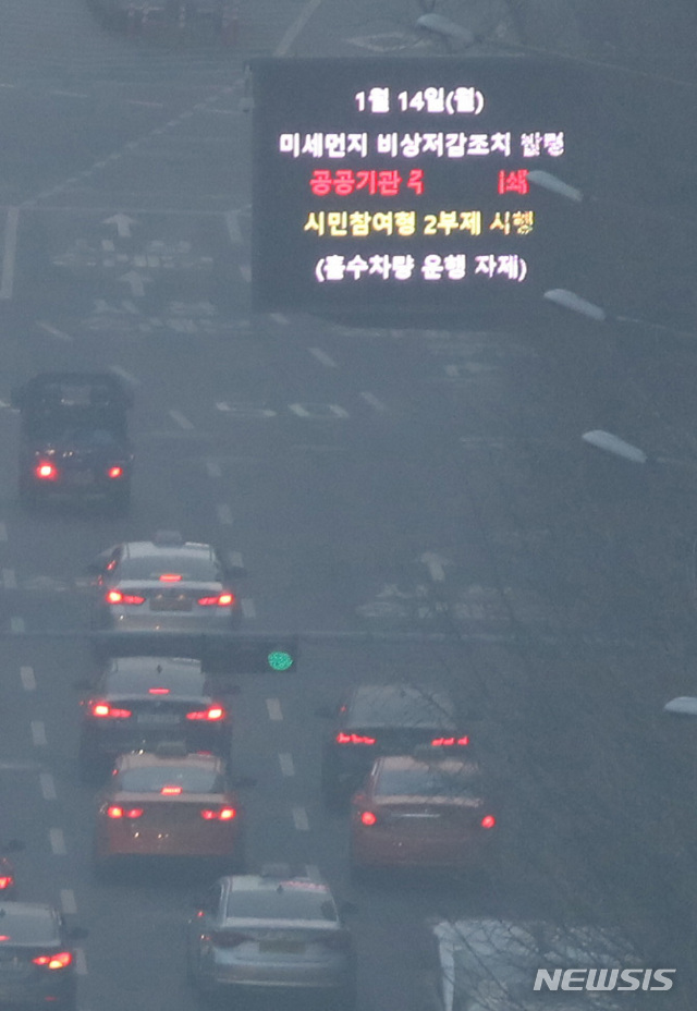 비상저감조치 발령에 따라 14일 수도권 행정·공공기관의 차량 2부제와 서울지역 노후경유차 운행제한이 시행되며 서울시는 행정·공공기관 주차장 434개소를 전면 폐쇄한다. 2019.01.14.