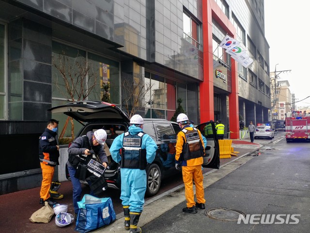 【천안=뉴시스】이종익 기자 = 소방청 중앙소방특별조사단이 15일 오전 충남 천안시 서북구 쌍용동 천안라마다앙코르호텔 화재 현장에서 화재원인 감식과 소방시설 점검 등을 위한 화재감식을 준비하고 있다.  2019.01.15.