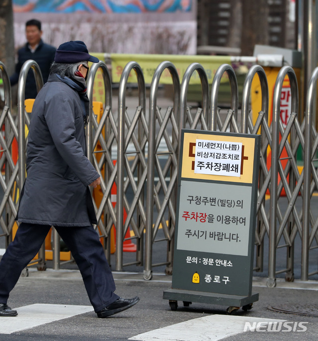 비상저감조치 발령에 따라 수도권 행정·공공기관의 차량 2부제와 서울 지역 노후 경유차 운행 제한이 시행된다. 서울시는 행정·공공기관 주차장 434개소를 전면 폐쇄한다. 2019.01.15.