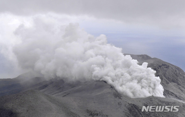 일본 기상청은 신다케 화산이 이날 오전 9시19분께 분화해 연기가 500m까지 솟았으며 화산재 등이 분출됐으나 거주지역까지는 도달하지 않았다며 주변에 입산통제령을 내렸다. 2019.01.17.
