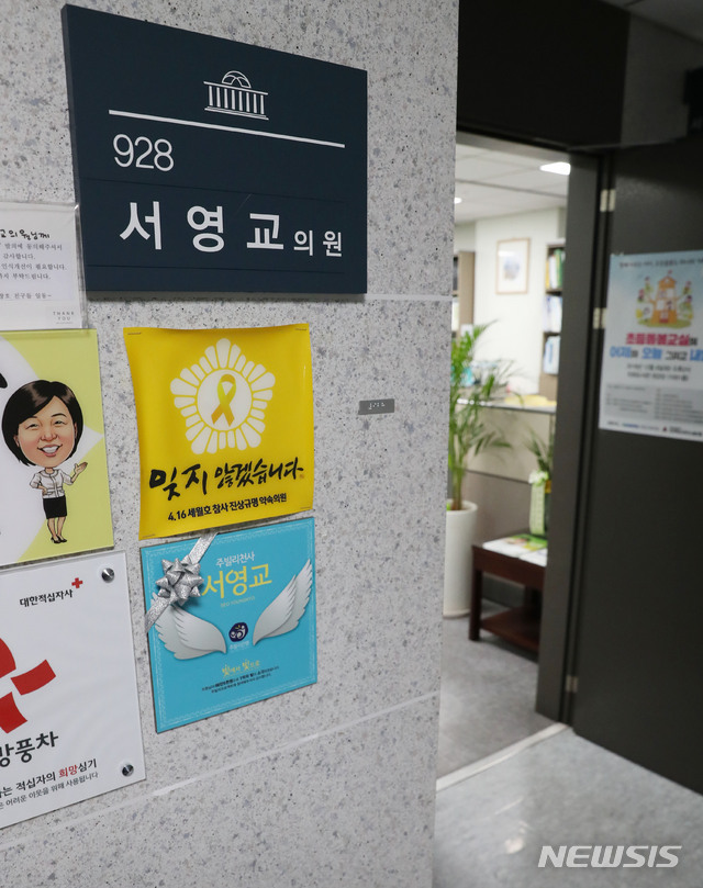 【서울=뉴시스】홍효식 기자 = 서영교 더불어민주당 의원이 지인 아들의 재판과 관련해 법원에 부적절한 청탁을 했다는 의혹이 불거지고 있다. 사진은 17일 오전 서울 여의도 국회 의원회관 서 의원의 사무실. 2019.01.17.