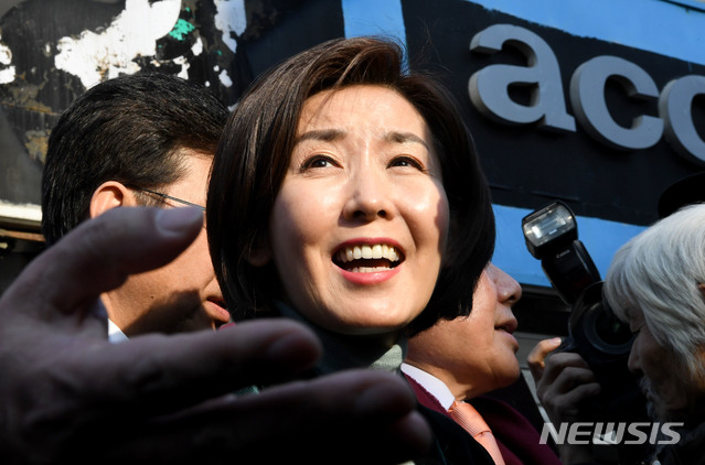 【목포=뉴시스】신대희 기자 = 나경원 자유한국당 원내대표와 정용기 정책위의장, 정양석 수석부대표, 이만희 원내대변인 등 한국당 원내지도부와 한선교 '손혜원 랜드게이트 진상규명 TF' 위원장 등이 22일 오후 전남 목포시 근대역사문화공간인 대의동 일대를 둘러봤다. 이날 나 원내대표가 목포 옛 동아약국 앞에서 취재진 질문에 답변하고 있다.2019.01.22.