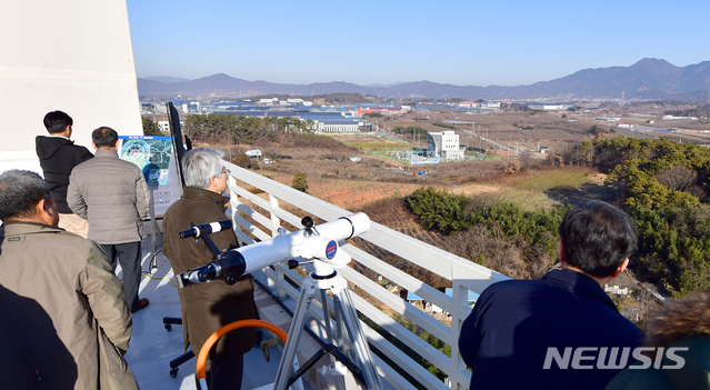 【광주=뉴시스】류형근 기자 = 한전공과대학(일명 켑코텍·Kepco Tech) 입지 선정 심사위원들이 24일 오전 광주 북구 과학기술원 교수아파트 옥상에서 광주시가 제출한 후보지 현장 실사를 하고 있다. 2019.01.24.