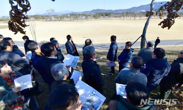 【나주=뉴시스】류형근 기자 = 한전공과대학(일명 켑코텍·Kepco Tech) 입지 선정 심사위원들이 24일 오후 전남 나주시 빛가람동 부영CC에서 전남도가 제출한 한전공대 후보지 현장 실사를 하고 있다. 2019.01.24.