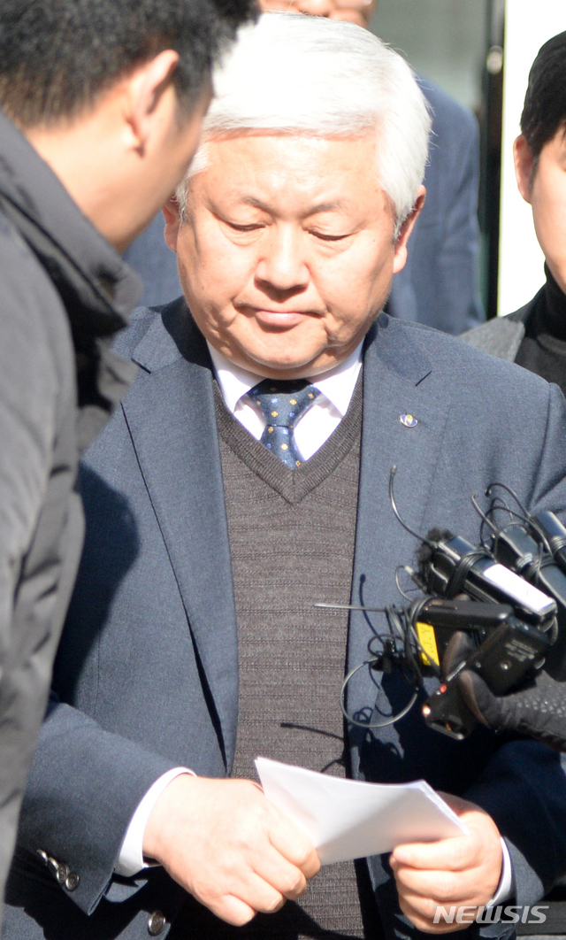 【전주=뉴시스】김얼 기자= 25일 전북 전주시 전주지방법원에서 황인홍 무주군수의 공직선거법 위반혐의 1심 선고 공판이 실시된 가운데 황인홍 무주군수가 공판을 마치고 취재진의 질의에 답변을 하지 않으며 자리를 빠져나가고 있다. 황군수는 이날 200만원을 선고 받았다. 2019.01.25.