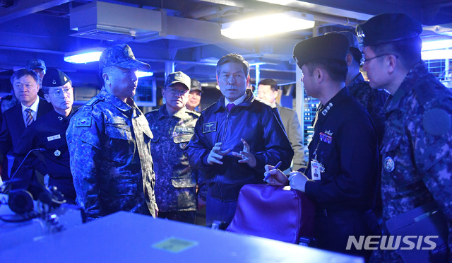 【서울=뉴시스】김선웅 기자 = 정경두 국방부장관이 26일 부산 해군작전사령부를 방문해 대비태세 현장을 점검하고 있다. 2019.01.26. (사진=국방부 제공)