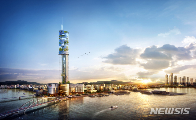 부산시는 민선 7기에 들어 북항재개발지역에 지역을 대표하는 관광 랜드마크 건립을 롯데그룹에 요청했고, 롯데는 과거의 사업계획을 백지화하고 원점에서 재검토해 주거 시설을 완전히 배제한 '도심 속 수직공원' 콘셉트의 바다와 숲이 만나는 열린 문화 공간으로 새로운 개발 계획(안)을 내놓았다. 2019.01.27. (사진=부산시 제공)
