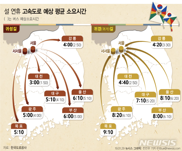 [그래픽]설 연휴 고속도로 예상 소요시간