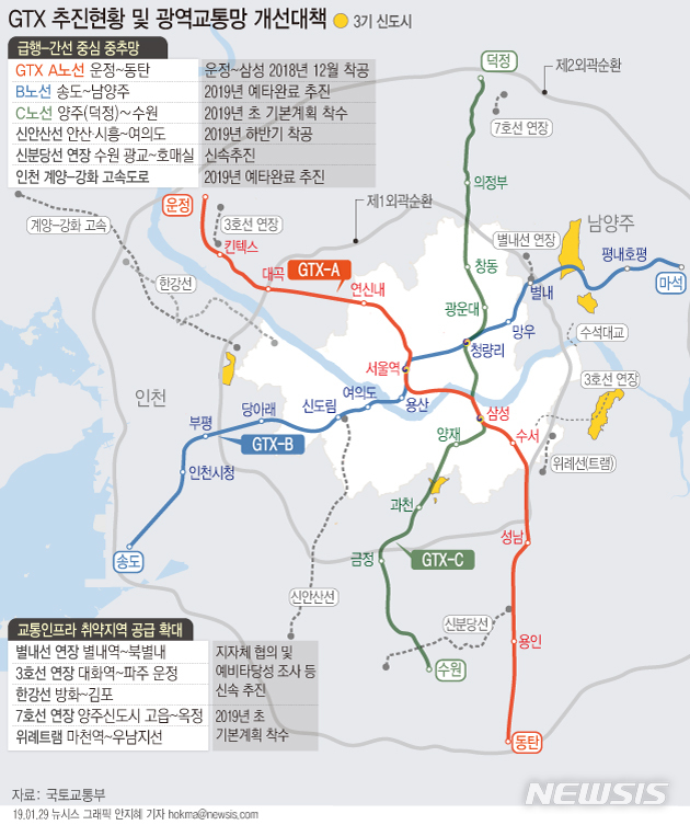 [그래픽]수도권광역급행철도(GTX) 추진현황 및 광역교통망 개선대책